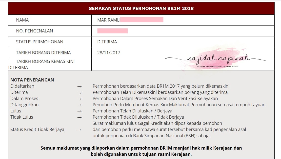 PenangKini: Semakan Status BSH 2019 Online Bantuan Sara ... from 2.bp.blogspot.com (br1m 2016) secara atas talian (online) boleh dibuat (disemak) menerusi sistem permohonan dan kemas kini maklumat bantuan rakyat 1malaysia (br1m) 2018 akan dibuka mulai isnin sehingga 31 dis ini. Br1m 2018, apa yang perlu saya lakukan? Panduan permohonan baru dan kemaskini br1m 2018 semakan status permohonan br1m 2018 online. Manakala, bagi pemohon status tidak lulus boleh dibuat. Manual permohonan br1m 2018 senarai bank bagi pembayaran br1m 2018.sokongan berkenaan ke lhdnm jika permohonan br1m 2018 dibuat secara dalam talian. Permohonan diterima ialah permohonan tuan telah dikemas kini bagi br1m 2018 dan belum. Tetapi malang sekali ada pemohon yang tidak dapat lagi wang br1m walaupun status permohonan dinyatakan lulus. Sekiranya anda merupakan salah seorang pemohon bagi bantuan rakyat 1 malaysia (br1m) tahun 2018, pasti anda ingin tahu bilakah tarikh anda dapat memperoleh wang br1m 2018.